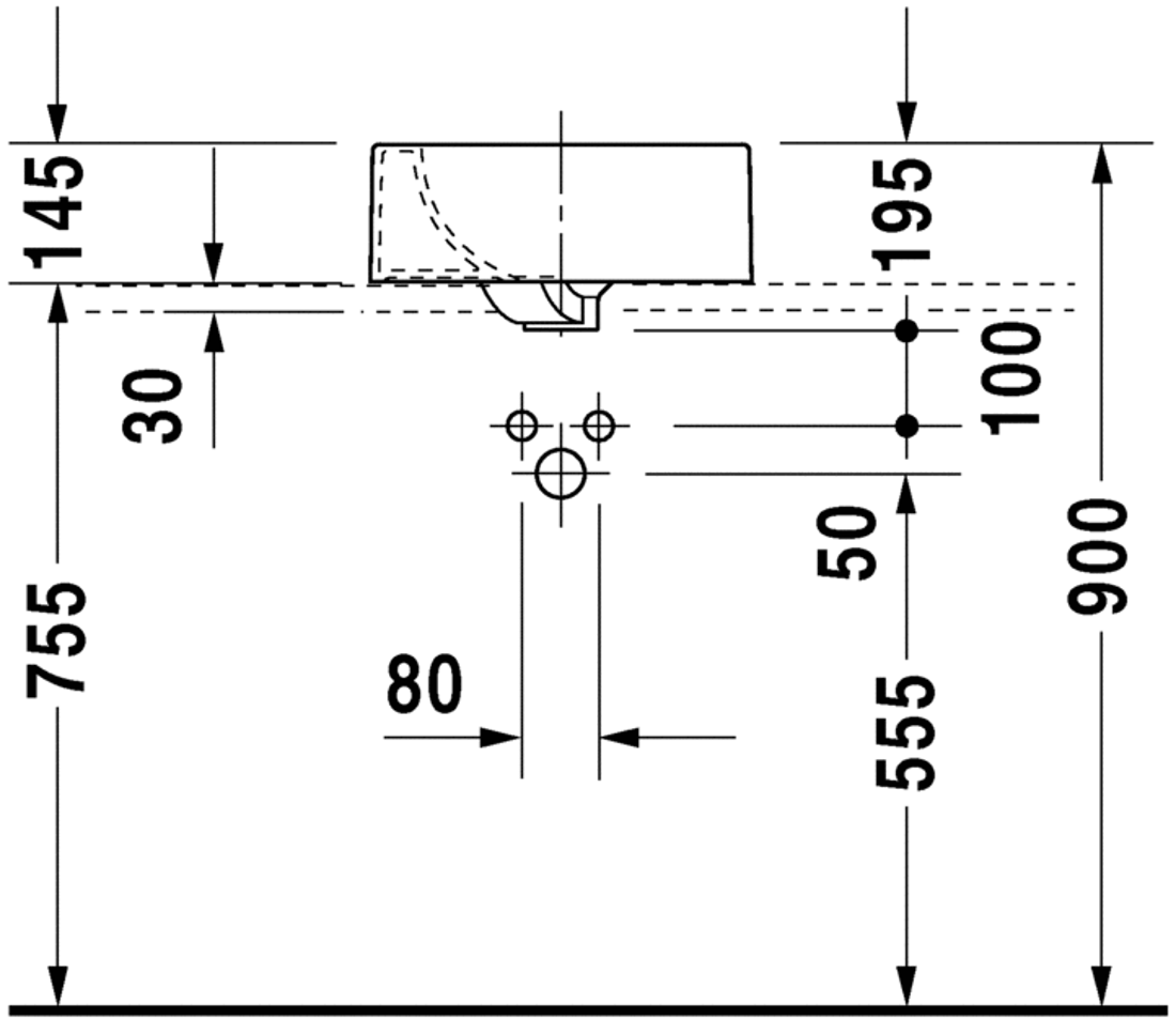 ground, with overflow, with tap platform, fixings included, 400 mm