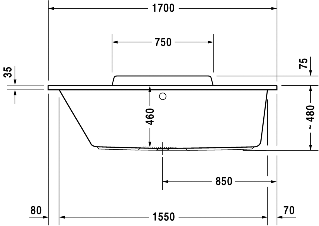 rectangle, built-in or for panel, with one backrest slope left, with support frame and waste and overflow, 5 mm sanitary acrylic