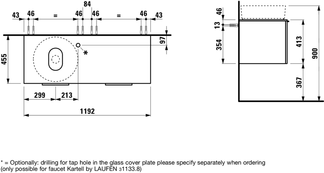 Ladičar sa pokrovom 12 mm, sa sifonom koji štedi prostor, sa izrezom lijevo za zdjelasti umivaonik 81233.1