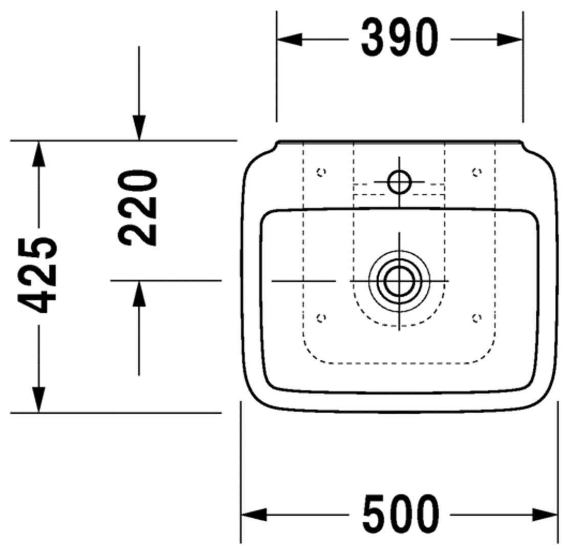 without overflow, with tap platform, fixings and ceramic covered slotted waste included, 500 mm