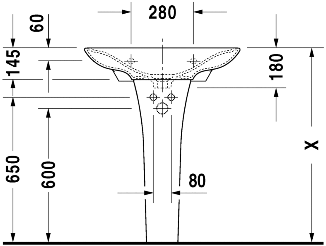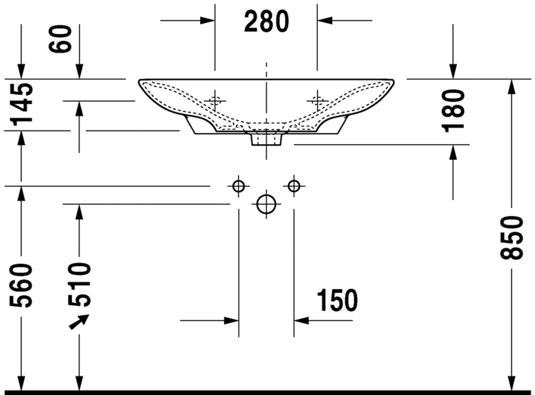without overflow, with tap platform, with deep basin, ceramic covered slotted waste included, 700 mm