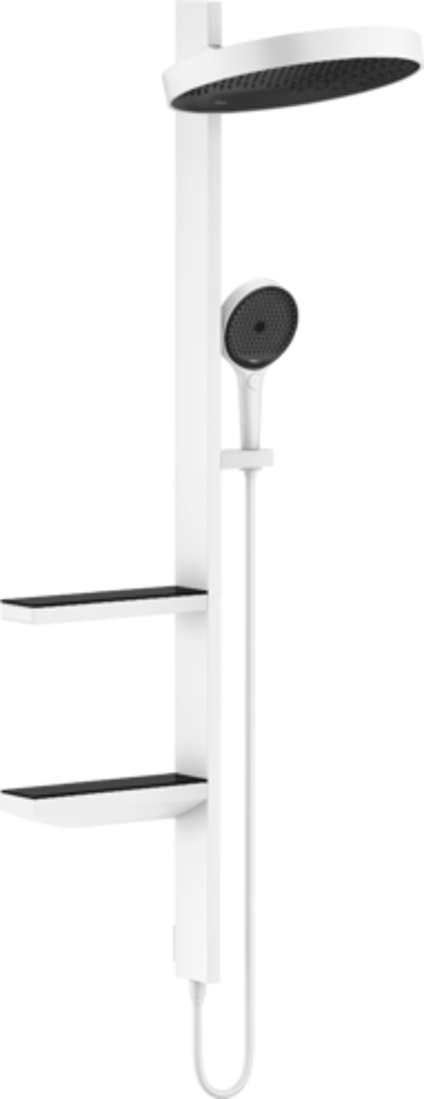 Sastoji se od: nadglavnog tuša, ručnog tuša, držača za tuš, tuš creva, 2 staklene police, tuš šipke