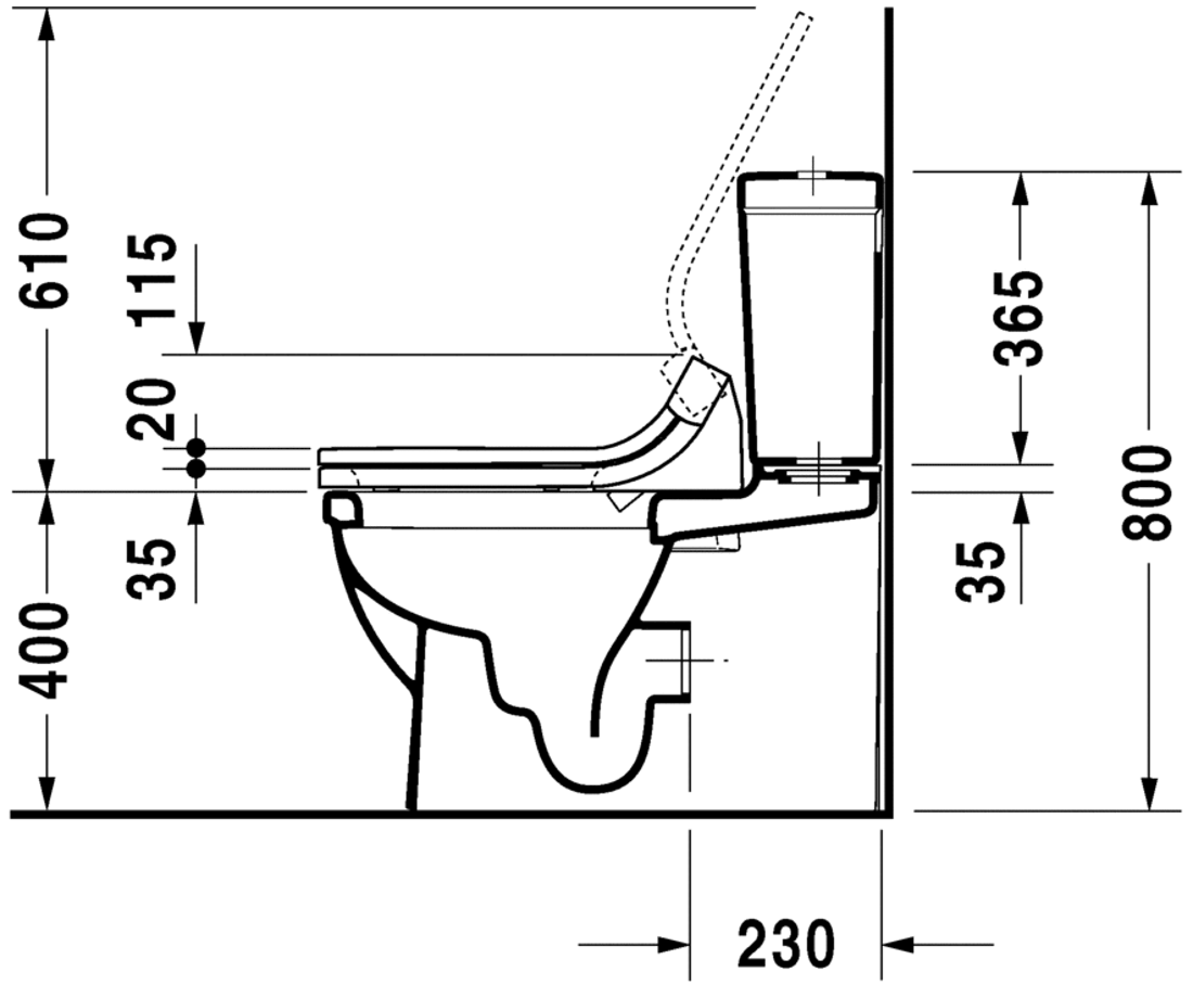 washdown model, only in combination with SensoWash, (without cistern), Outlet for Vario connector set, for horizontal and vertical outlet, length adjustable from 70 - 200 mm, and vario connecting bend, vertical outlet from 190 - 230 mm, connecting elements for SensoWash with concealed connections included, fixings included, EWL class 1
