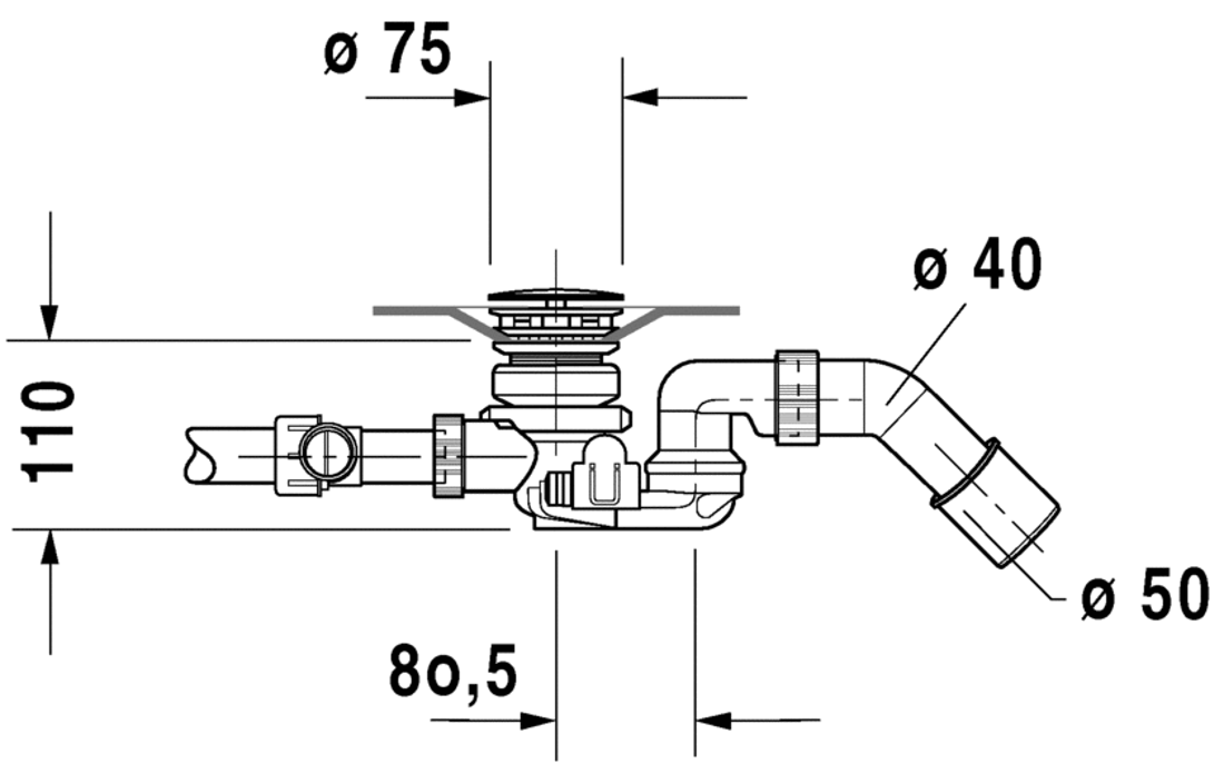 for waste and overflow Quadroval, with base inlet, chrome, **, outlet diameter 52 mm, length of bowden cable 940 mm, for whirltubs