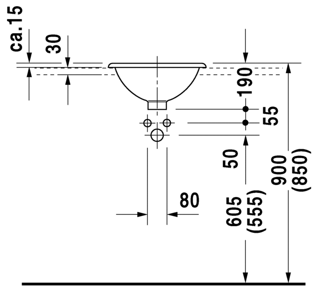 countertop basin, with overflow, without tap platform, outside fully glazed, Ø 400 mm