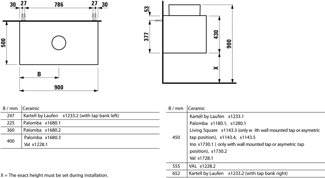 Ormarić za umivaonik, sa 1 ladicom, sa središnjim izrezom i sifonom za uštedu prostora