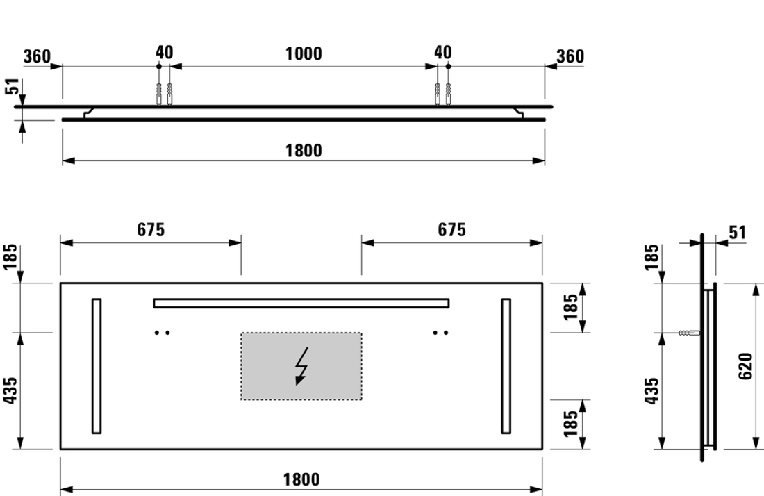 Ogledalo sa 1 integriranom horizontalnom rasvjetom 1x28W, IP44 i 2 vertikalne rasvjete 2x14W, IP44 sa senzorskim prekidačem