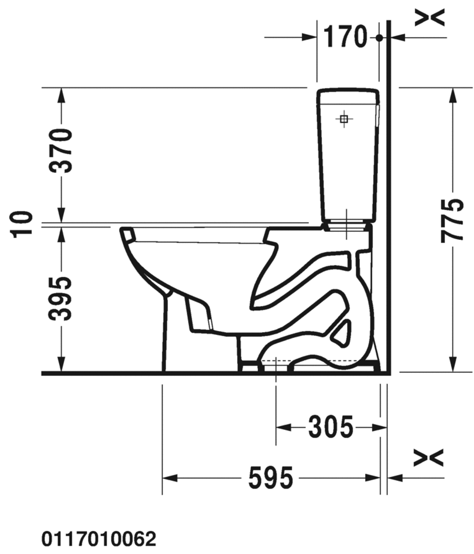 (without cistern), US-version, elongated with syphonic jet action, 305 mm/12" rough-in, vertical outlet