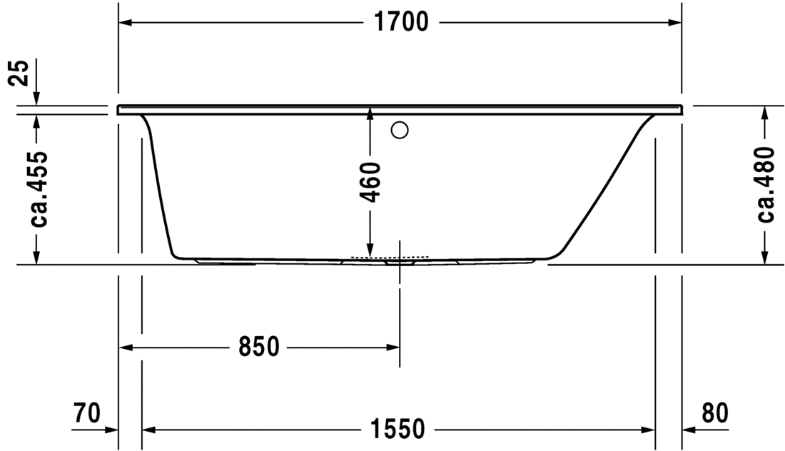 rectangle, built-in or for panel, with one backrest slope right, 5 mm sanitary acrylic