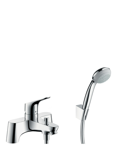 Focus 2-hole rim mounted bath mixer with diverter valve and Crometta 85 1jet hand shower