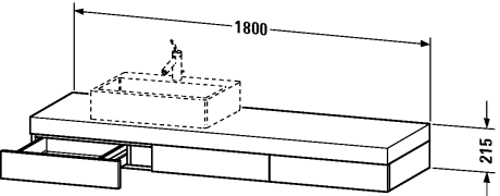 Room for siphon by asymetric drawers, Siphon # 005026 respectively Design Siphon # 0050361 is recommended, For using console support on a drywall, a suitable subconstruction is required, Required specification for ordering: