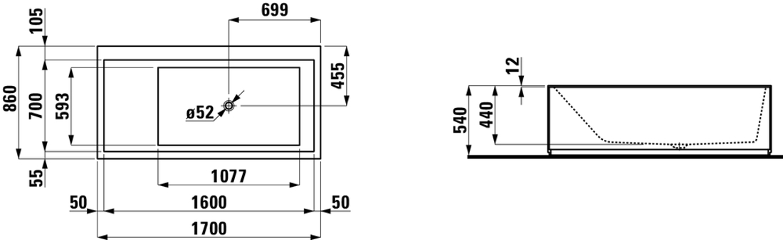 Kada, samostojeća, čvrsta površina, sa otvorom za slavinu, otvorom za preljev na prednjoj strani, sa sustavom za podizanje