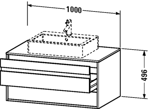 2 drawers, upper drawer including cut-out for siphon and siphon cover, countertop including one cut-out, for 1 above counter basin central