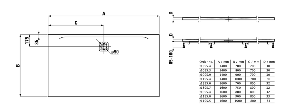 Tuš-kade mogu se lako instalirati zahvaljujući odgovarajućem, stabilnom montažnom okviru sa opsegom podešavanja visine od 85 do 160 mm.