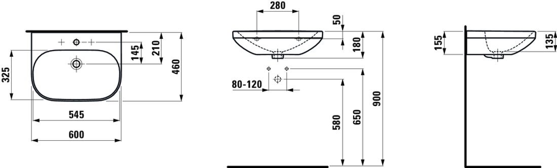 Opis: jedna rupa za slavinu, u sredini
