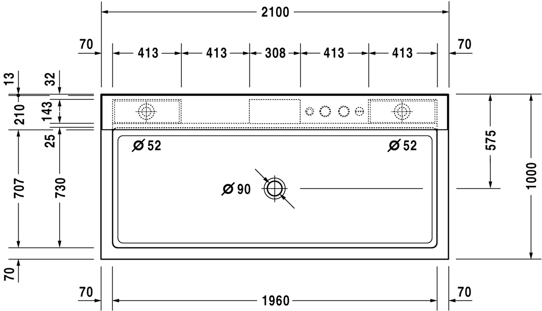 included in delivery: - furniture cover in respective furnitur surface (18) White Matt or (49) Graphite Matt (Please add the furniture colour code at the 7th and 8th digit of the item number when ordering Nahho.) - Axor Starck 2-hole thermostic bath mixer with concealed part (connection hose # 790174 is recommended) - Axor Starck baton hand shower with metal hose - 2nd floor flood spout - special waste and overflow