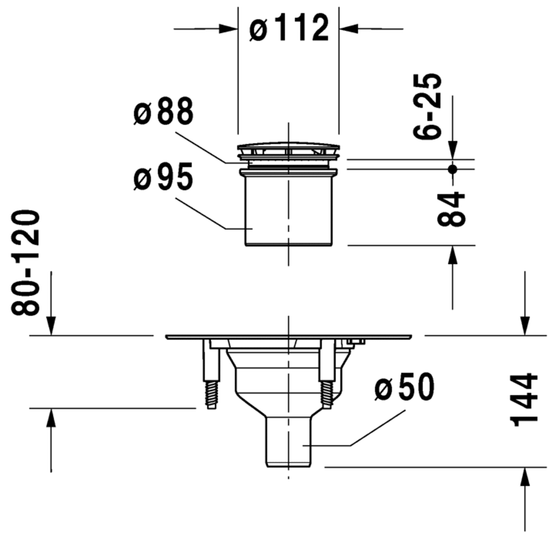 for DuraPlan shower trays, vertical outlet, Drain flow rate: 0,61 l/s (according to DIN EN 274), outlet diameter 90 mm, (white -00, chrome -10)
