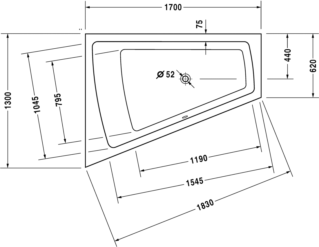 with one backrest slope left, built-in, with support frame and waste and overflow, 5 mm sanitary acrylic