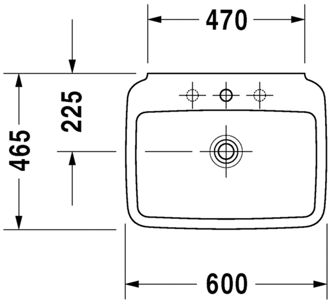 without overflow, with tap platform, ceramic covered slotted waste included, 600 mm