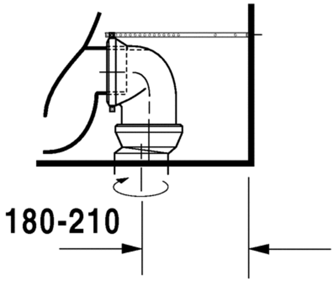 washdown model, (without cistern), Outlet for Vario connector set, for horizontal and vertical outlet, length adjustable from 70 - 210 mm, and vario connecting bend, vertical outlet from 200 - 240 mm, fixings included, EWL class 2