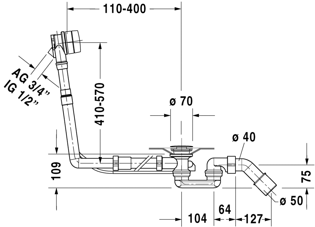 with water inlet, chrome, for DuraStyle # 700233, *, outlet diameter 52 mm, length of bowden cable 850 mm